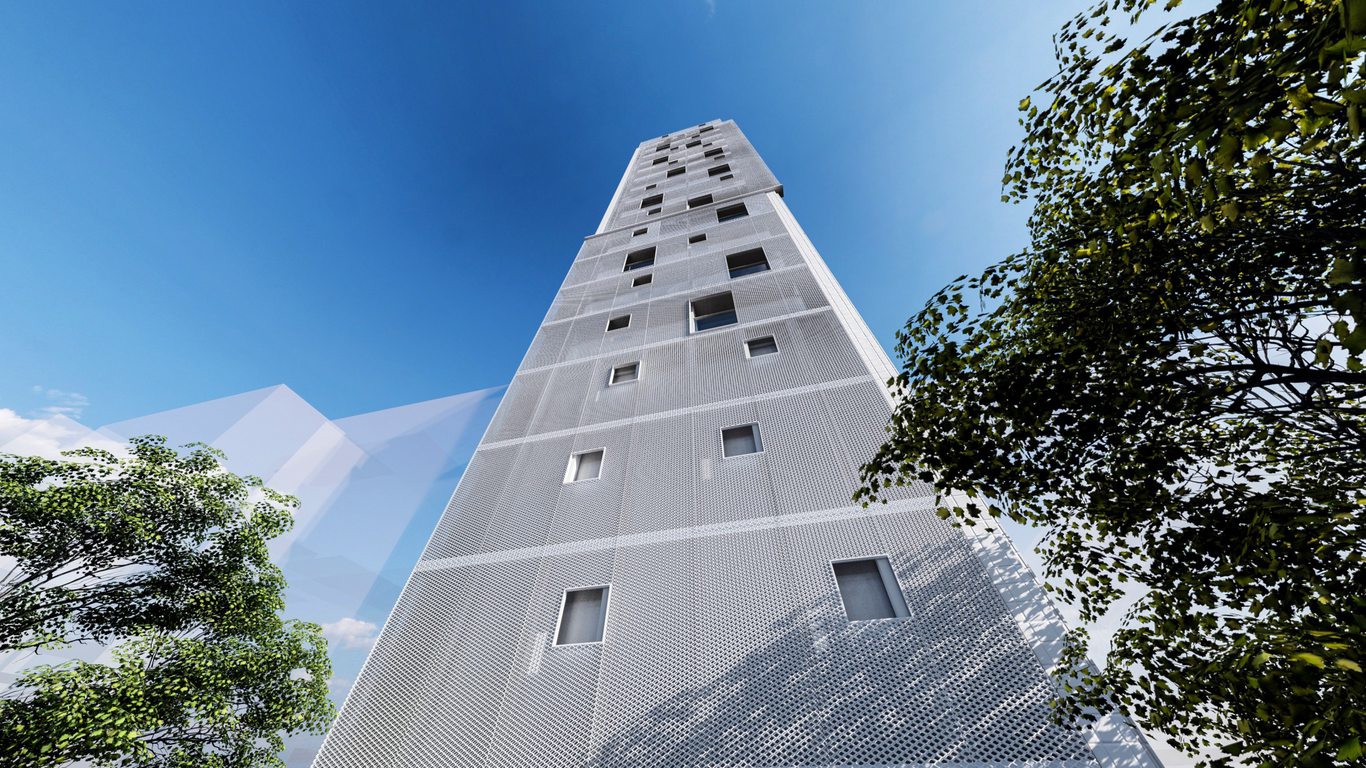明森中山「MSA」所屬區位為市中心高價值的商業路段,因為中山路是高雄市最重要的道路,本基地即是「小基地高容積」的特性(基地面積59.29坪,地下2層、地上15層)。重點在於如何發揮全方位的設計、幾何邏輯、容積運用⋯等專業統合的技巧,並克服施工技術上的困難,這是明森建築團隊一條龍(All in one)的具體實踐,因為明森創造了「小基地、高容積、高樓化」的最小公約數,她是未來推動都更、危老的重要典範!