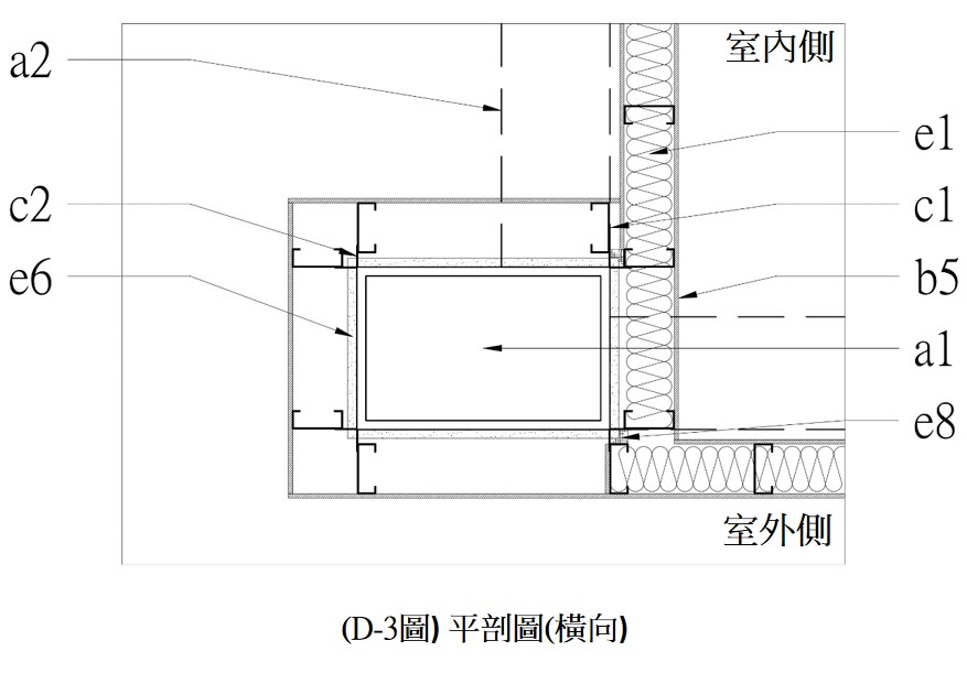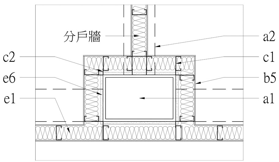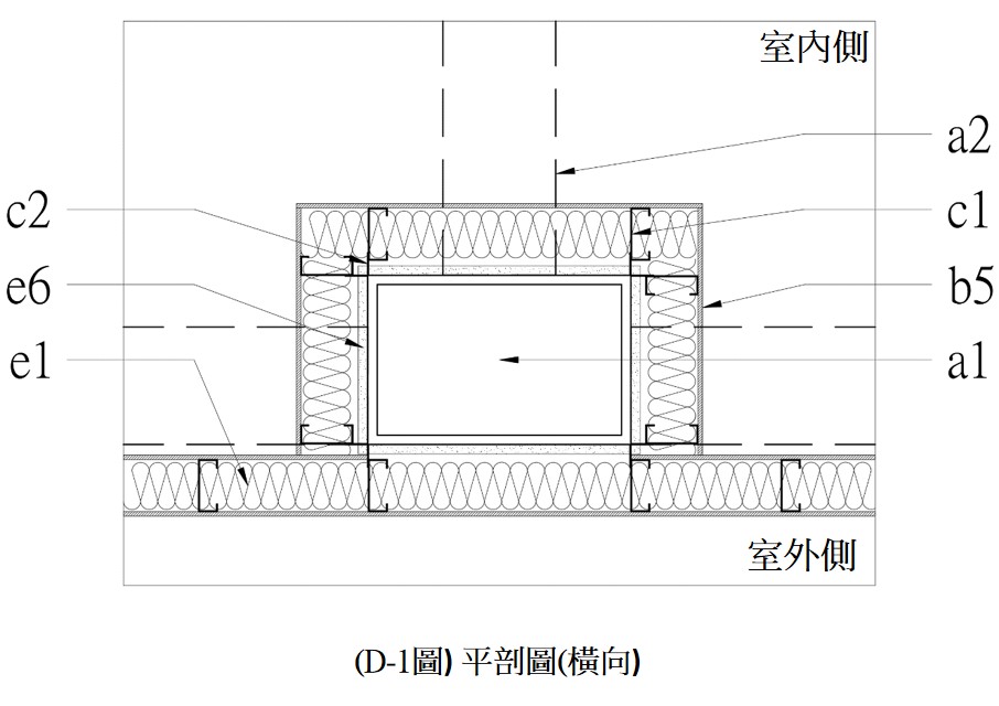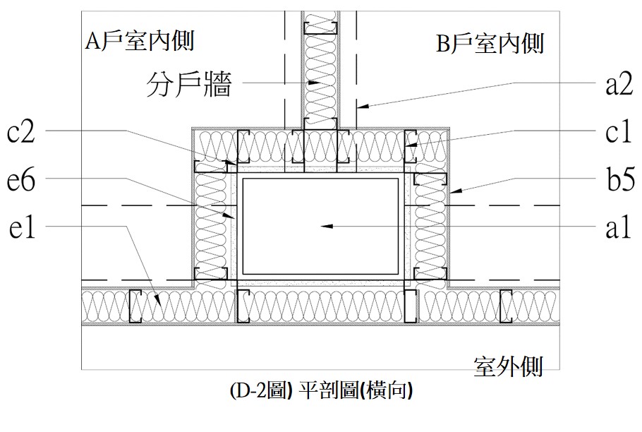 - (e1) Dry-type exterior wall with 60kg/m3 stone wool infill/ Place two pieces inside (implement same time as step 12-14).