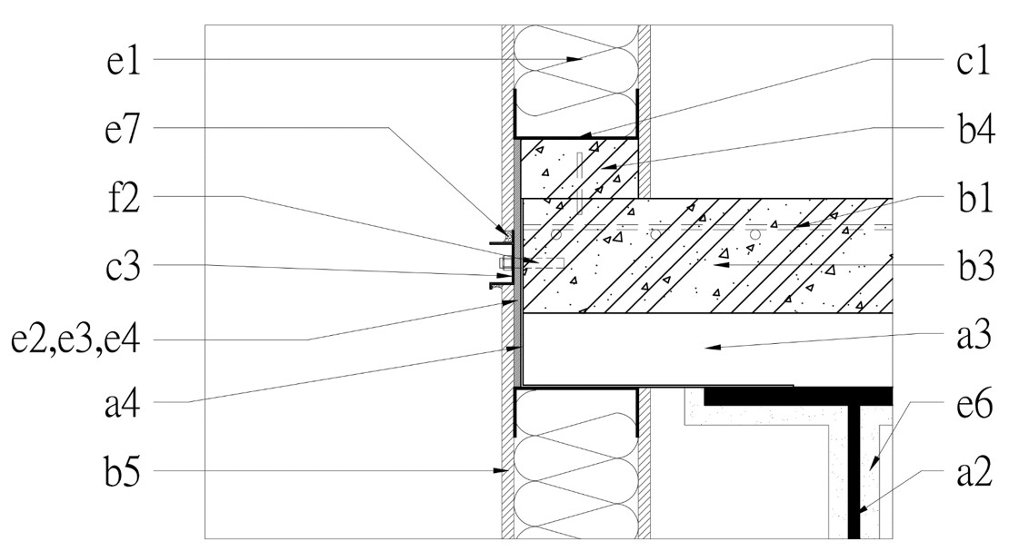 利用本發明專利可將外牆與樓板結合,RC止水敦與RC樓板結合,截斷水的路徑,位於多水區:陽台、浴室、廚房,採RC地板表面貼磚,外牆面掛混凝土板乾式施工,板材接合貼抗裂層,外加防水層,表面採天然塗料。