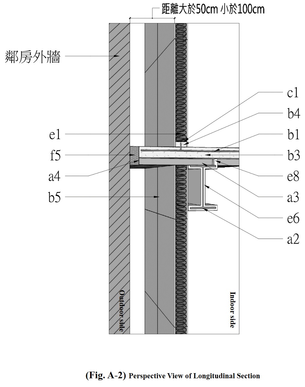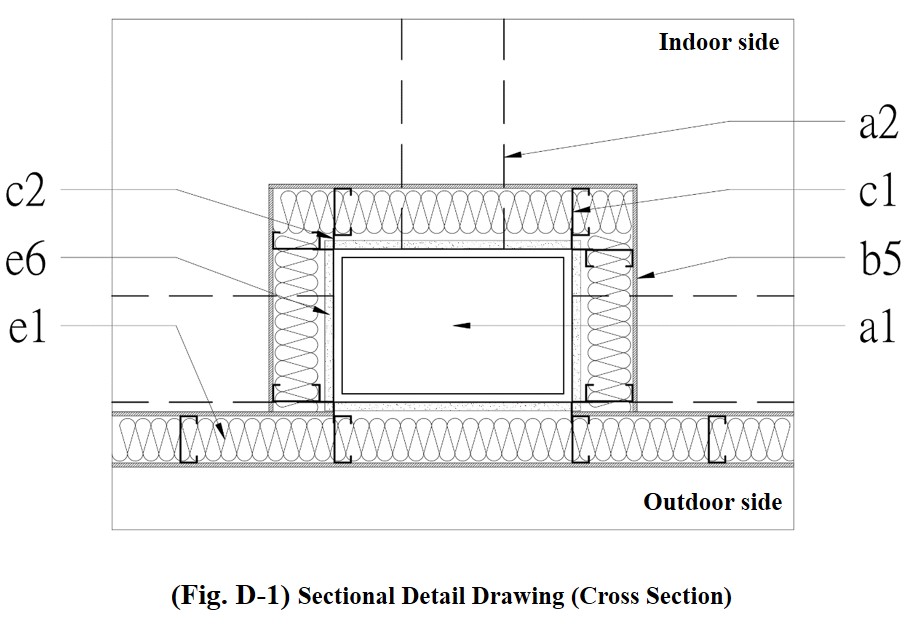 - (e4) Waterproof layer/ Apply waterproof layer on exterior wall panel from interior.