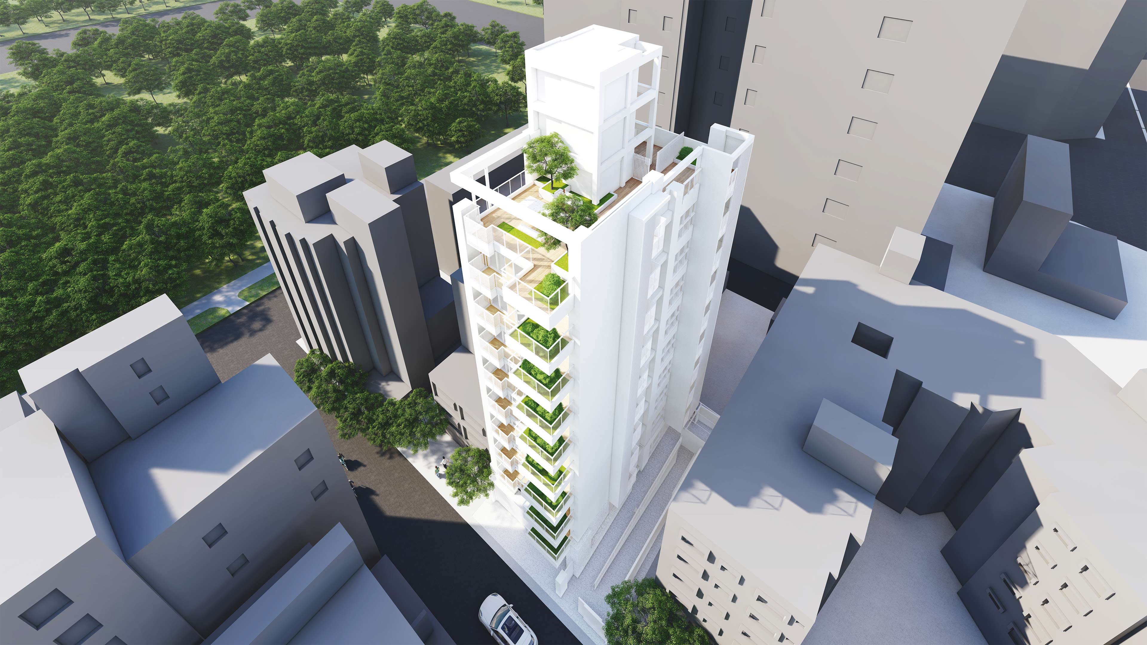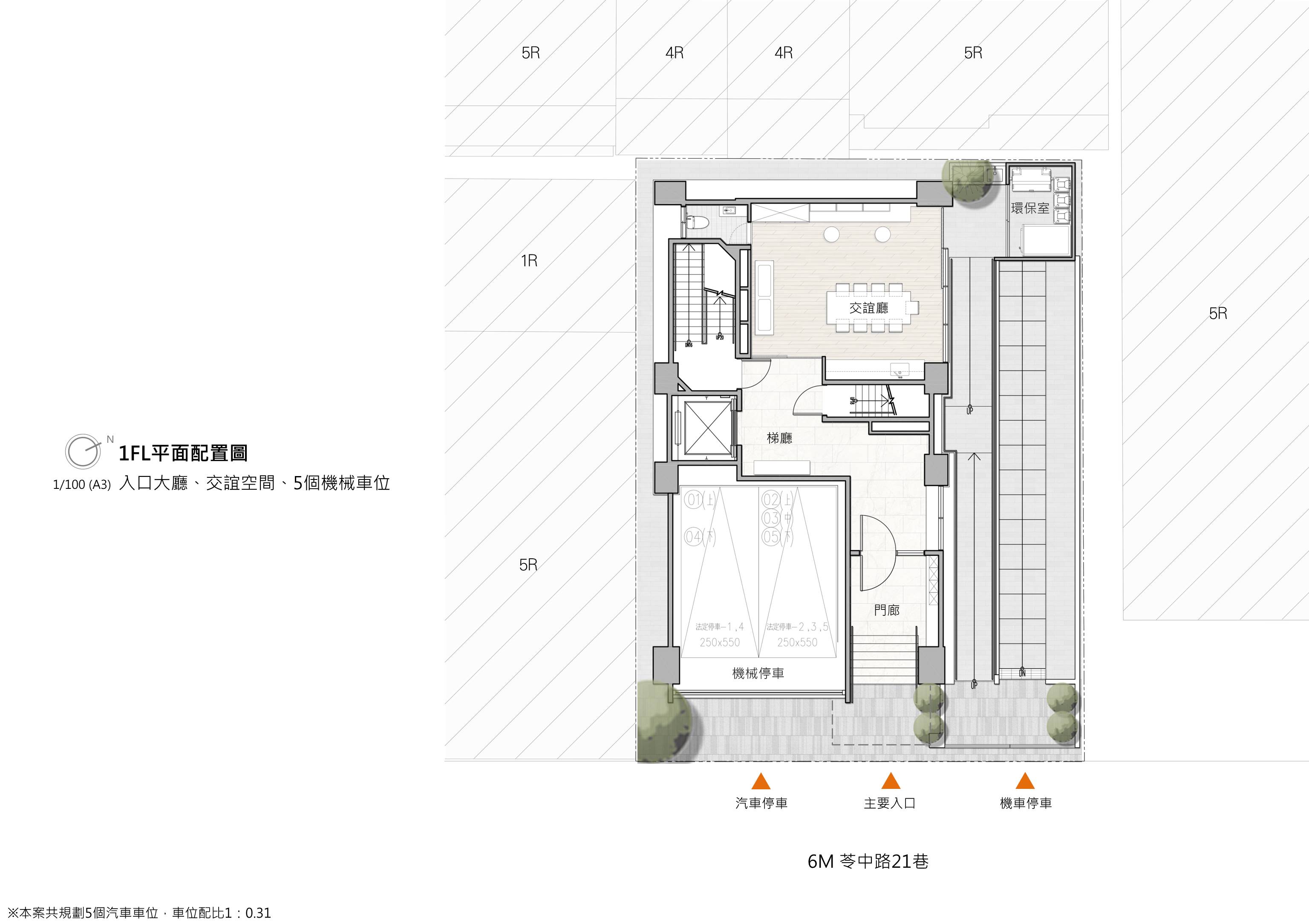本基地為矩形,但透過有技巧地安排將兩戶平面設計「邊間」的平面,有條理的凹凸能夠有效控制開窗,使住戶單元皆擁有良好的物理性能,如通風、視野及採光。