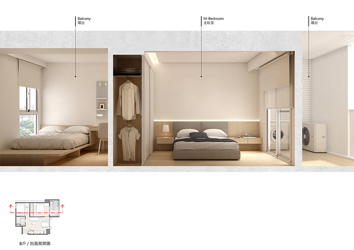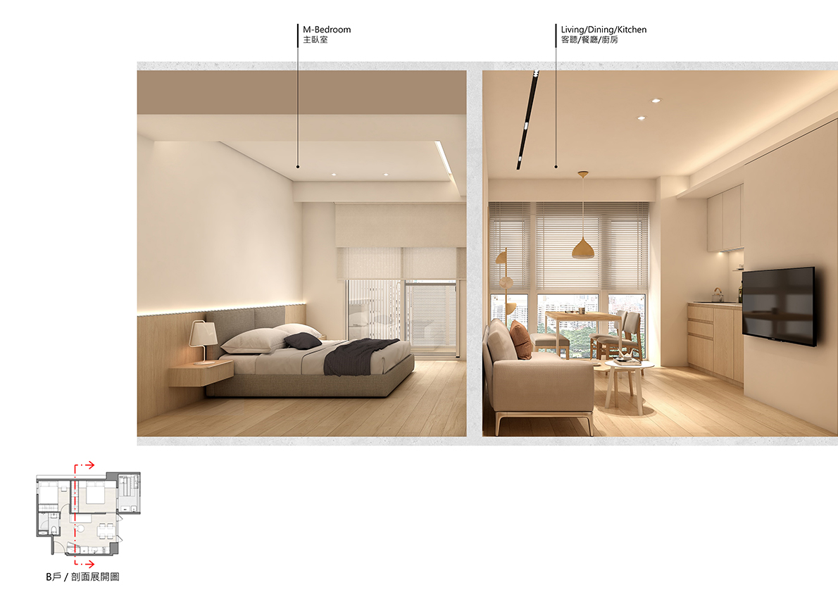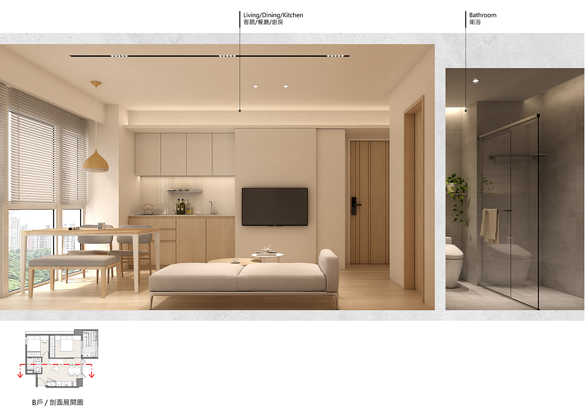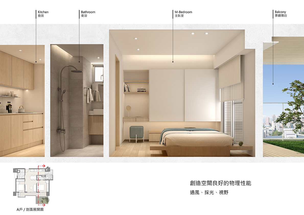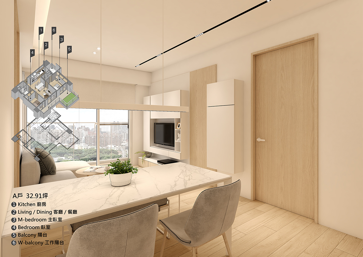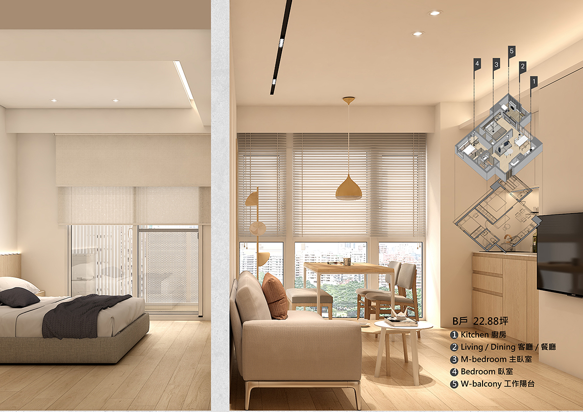 平面設計思考的同時,建築與室內空間同時並進,當您進入屋內,精巧的空間設計,沒有封閉的牆角,使得柔和的光線能夠透過陽台及窗戶進入室內,沒有過多的裝飾,一切美好源於自然,侘寂之美油然而生 !