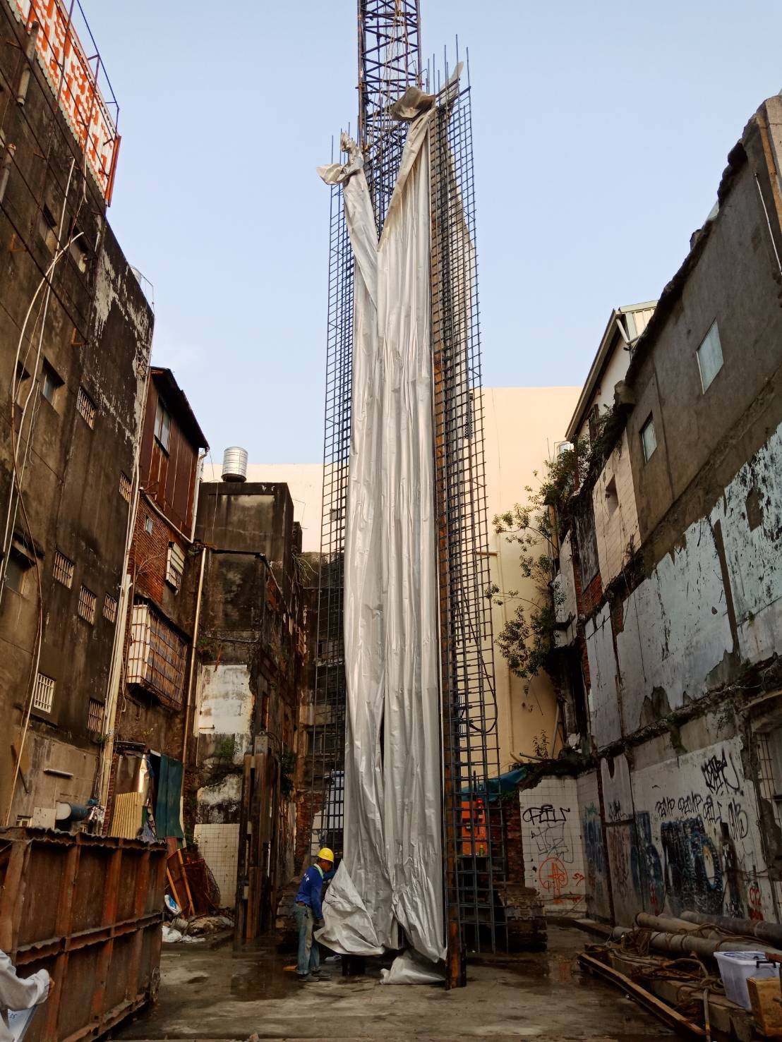在這充滿著新舊交疊、五顏六色、雜亂無章、騎樓外推、老朽違章、廣告招牌…的台灣建築語彙裡,