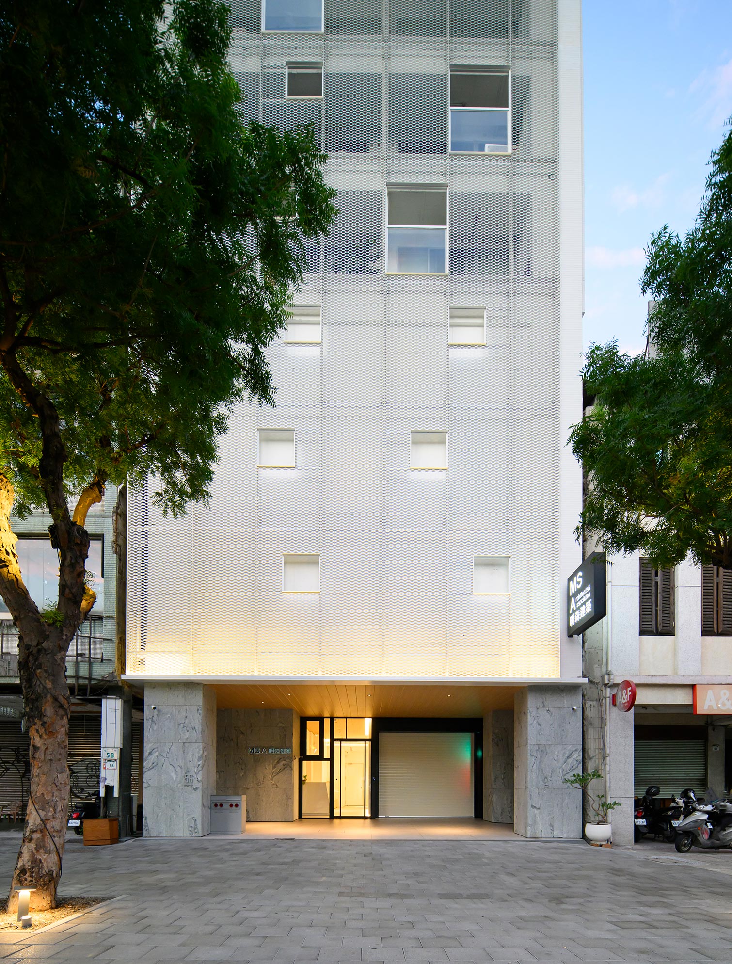 「MSA」全棟白色,正立面擴張網包覆外牆,呈現一種朦朧的薄膜層次、極具現代簡約語彙、優雅自然矗立於中山路上,而種在陽台的小樹會透過外牆讓車水馬龍的緊湊心情感到少許的和緩,白色、綠與光層層交錯…..我們將在這裡推動台灣現代化都會住宅,完成建築人的夢想,並達到務實、具體操作、落實理念,敬請拭目以待 !