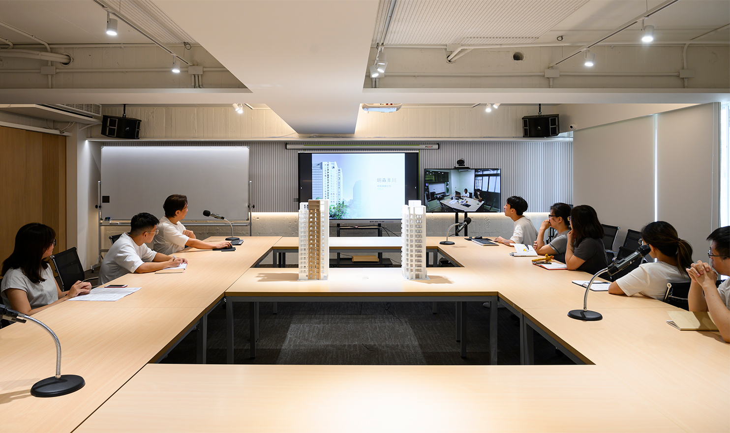 明森中山「MSA」全棟作為明森建築總部大樓,除了作為事務所設計部及工程部同仁之創意中心、新工法研發中心,同時也是明森建築推案的銷售中心、包含模型、建材展示、遠端會議辦公需求,其中還設有員工娛樂、專業健身房、運動空間、空中花園⋯等。