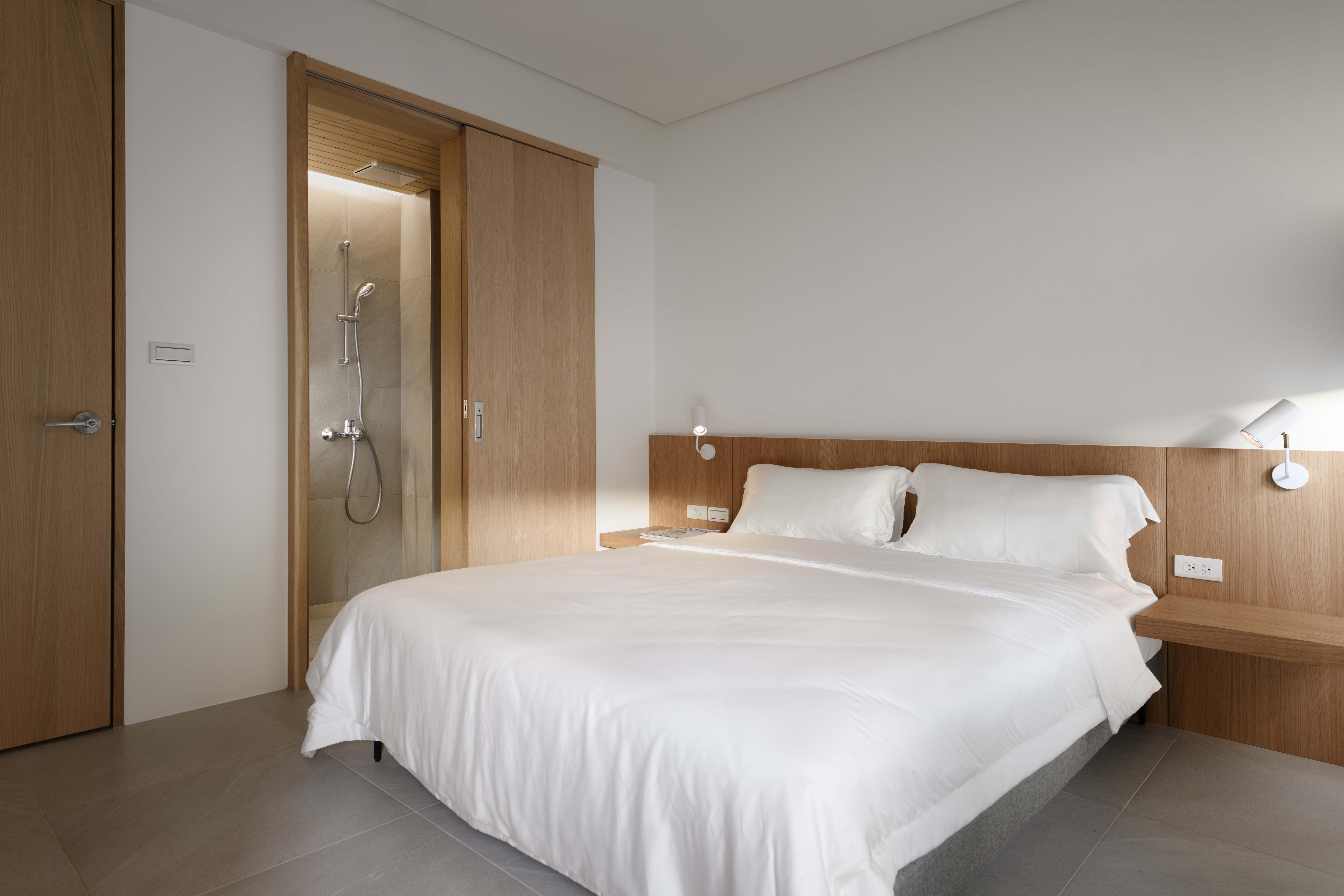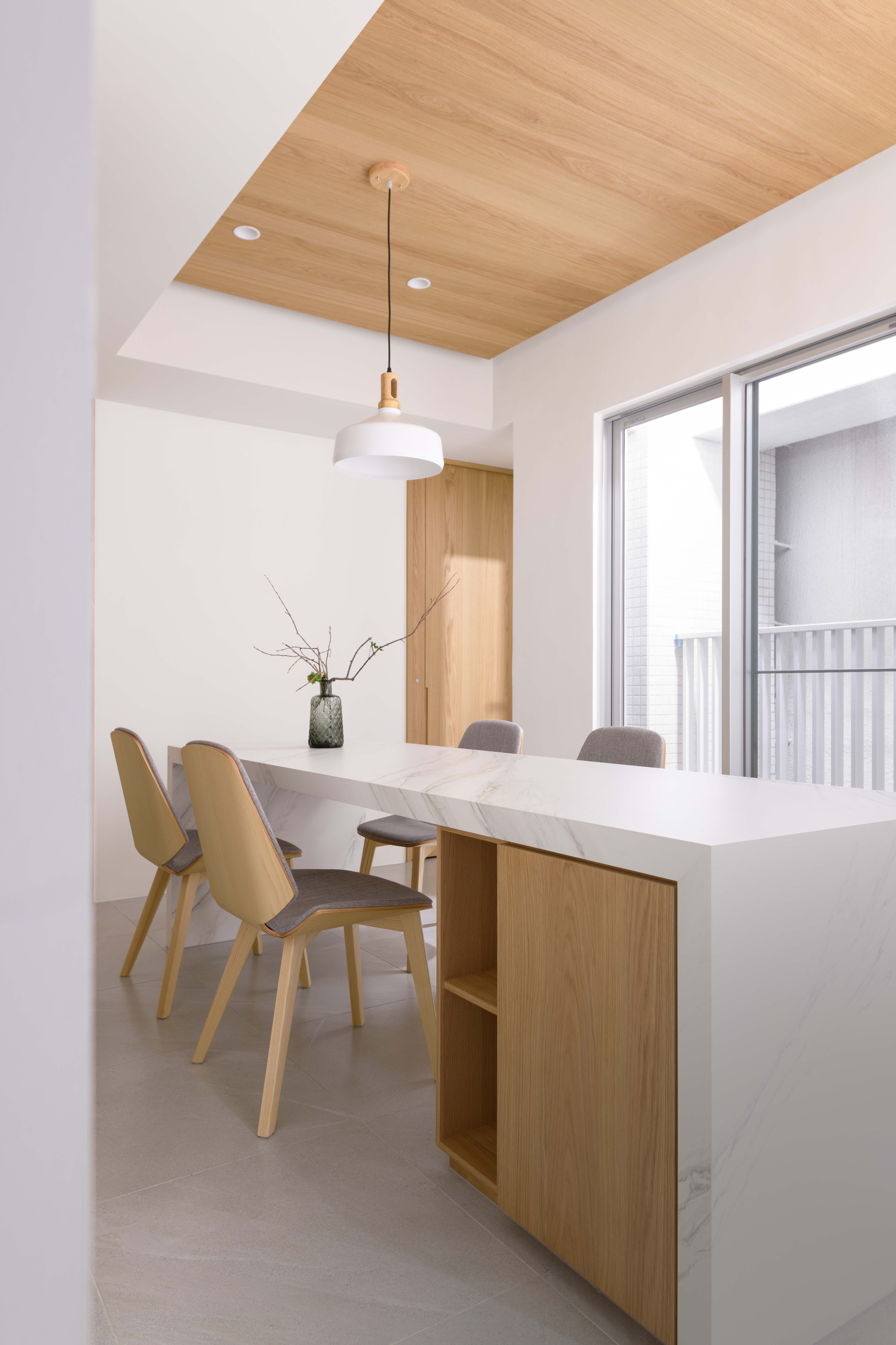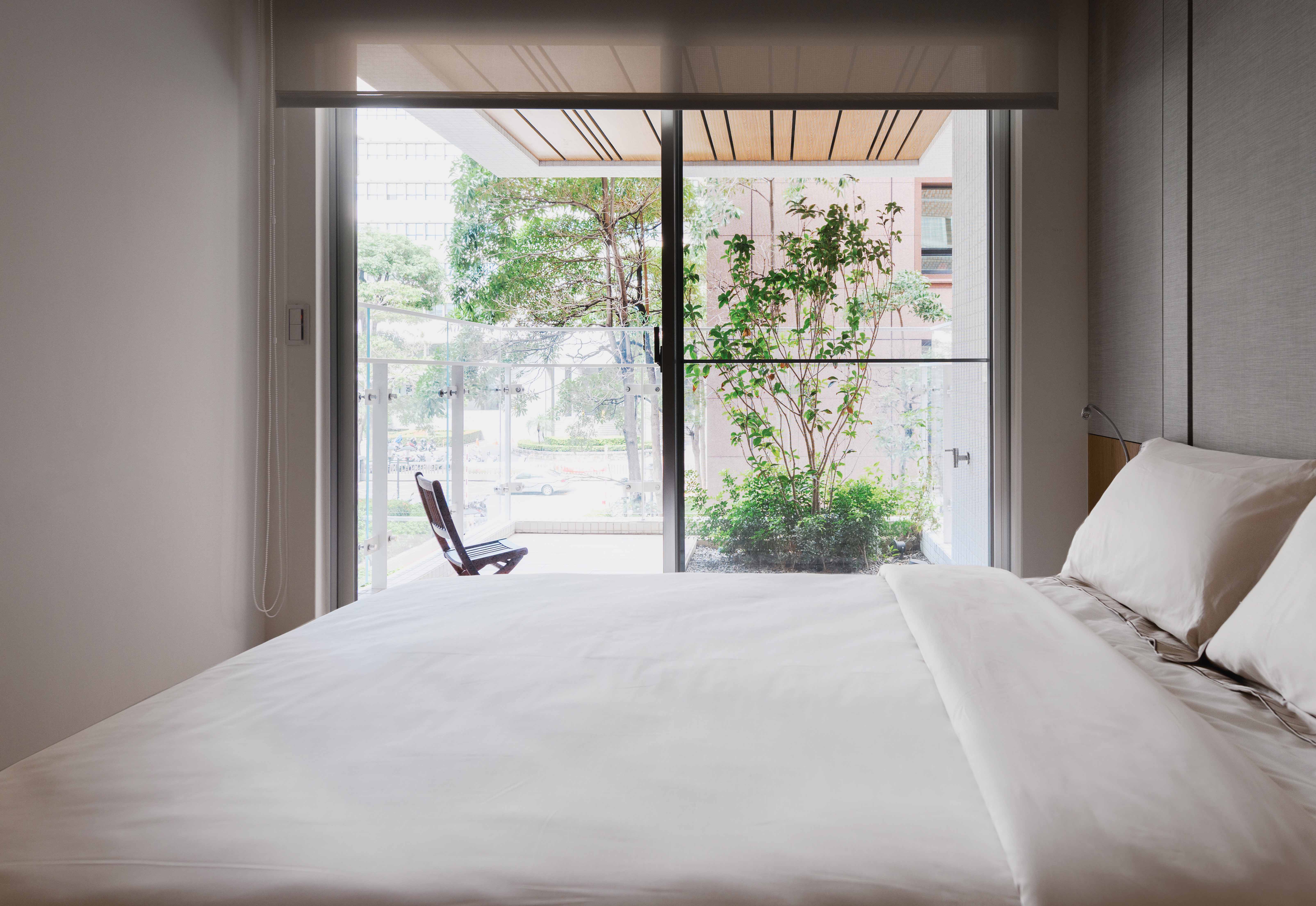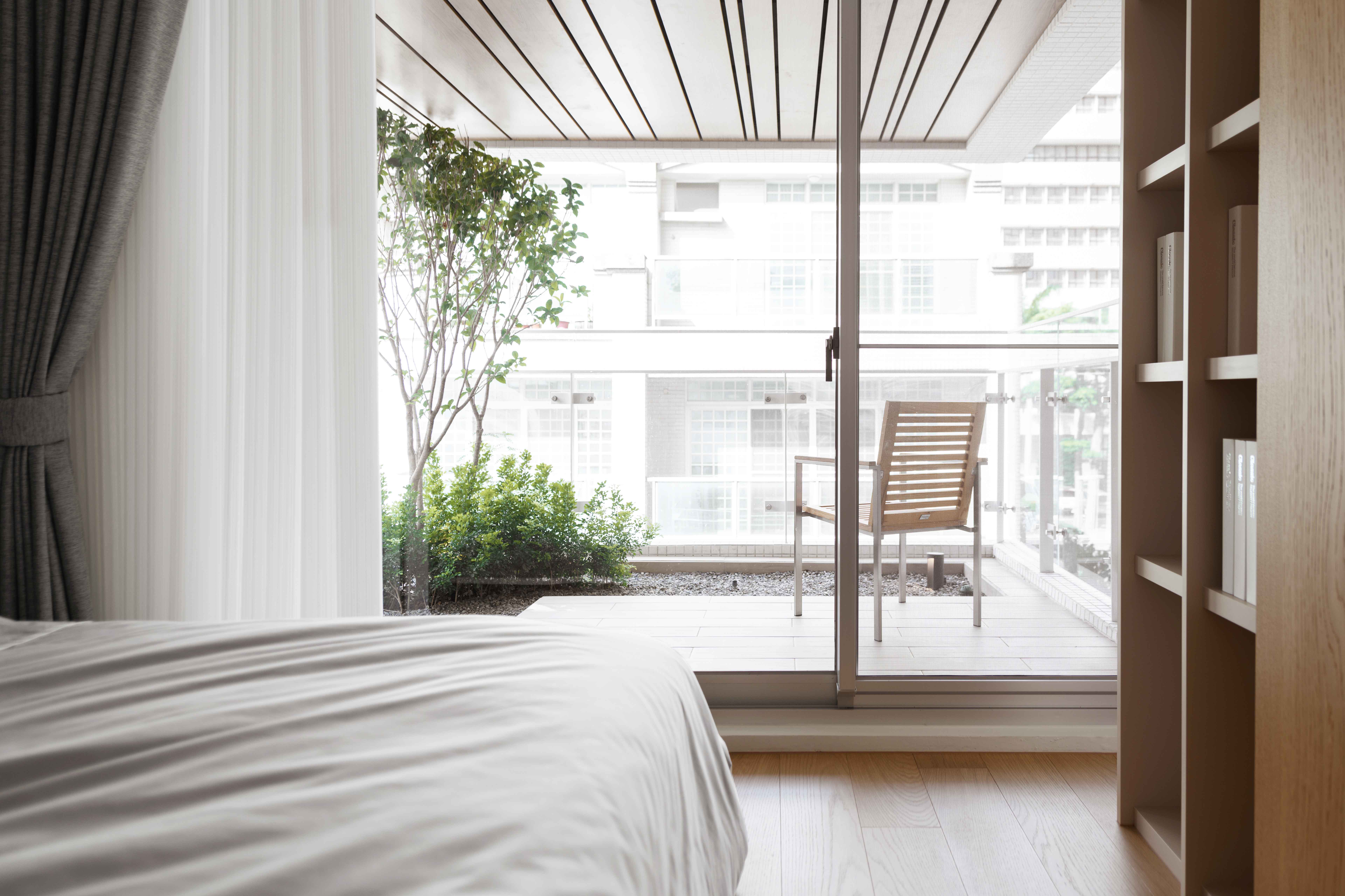 建築新舊更迭;我們試圖在舊有街道上注入新生命,從整合土地、建築、室內、景觀…行雲流水、自然合契,由內而外,呈現素白雅緻建築美學,就在舊有建築中長出一棟白色建築物,凹凸有形的深陽台上種著小樹,垂柳般的武竹詮釋了垂直綠化的層次,白色格柵如琴弦般的分割…「白、綠、木」再從外觀延伸至內部空間。