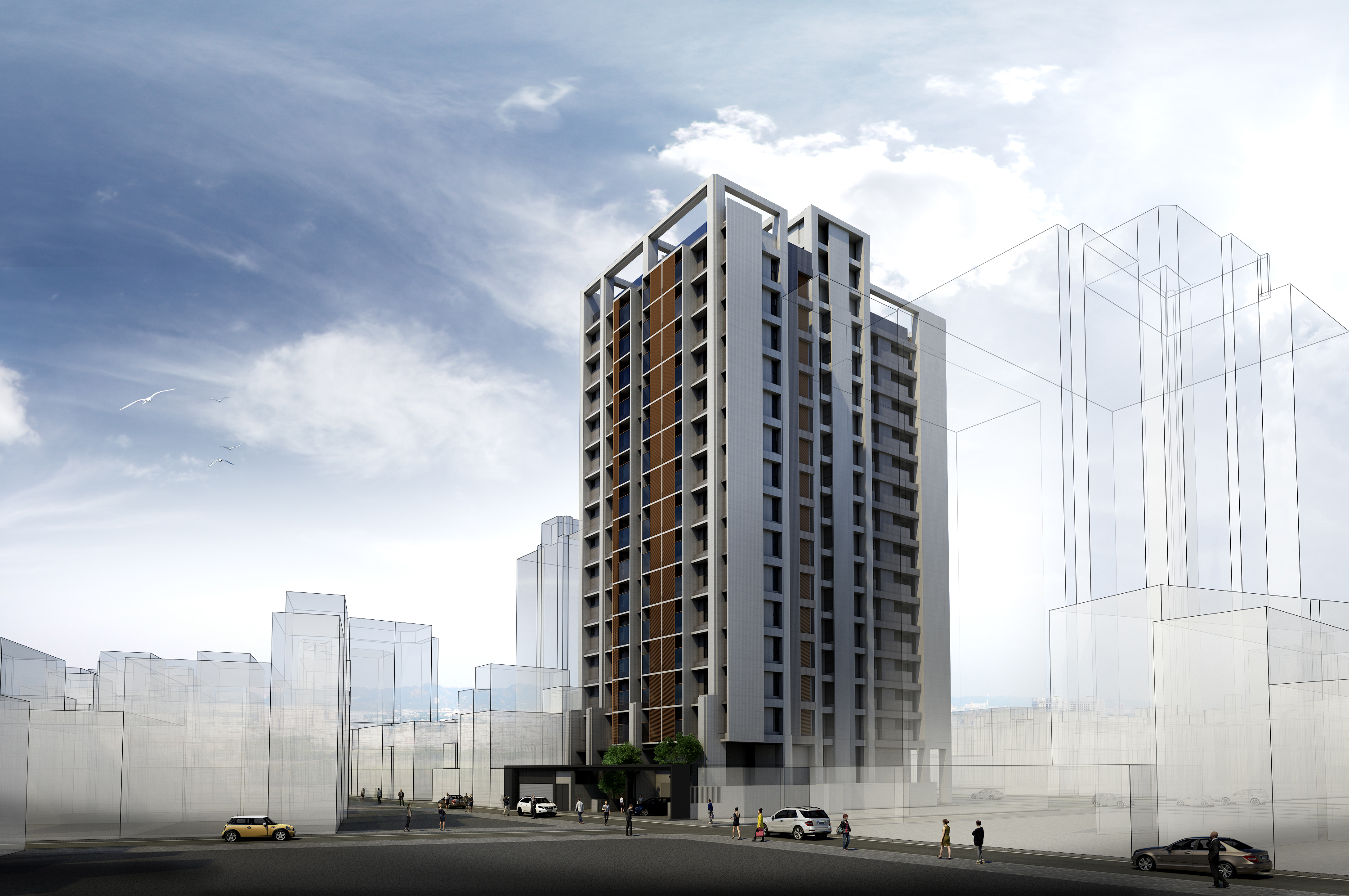 鳳 凰 綻業主:宏碁建設基地座落:臺灣 / 高雄市 / 苓雅區設計時間:2019 / 04基地面積:763.46m² (約230.95坪)總樓地板:8460.46m² (約2559.29坪)建築規模:地上15層 / 地下3層建築構造 : RC(Reinforced Concerte)鋼筋混凝土構造