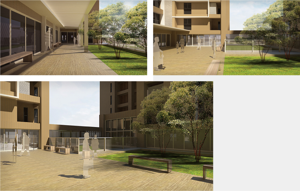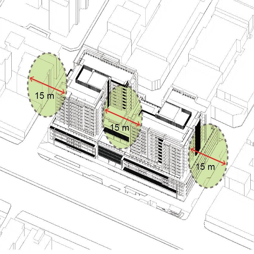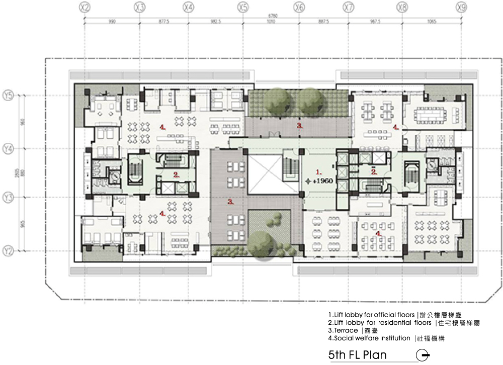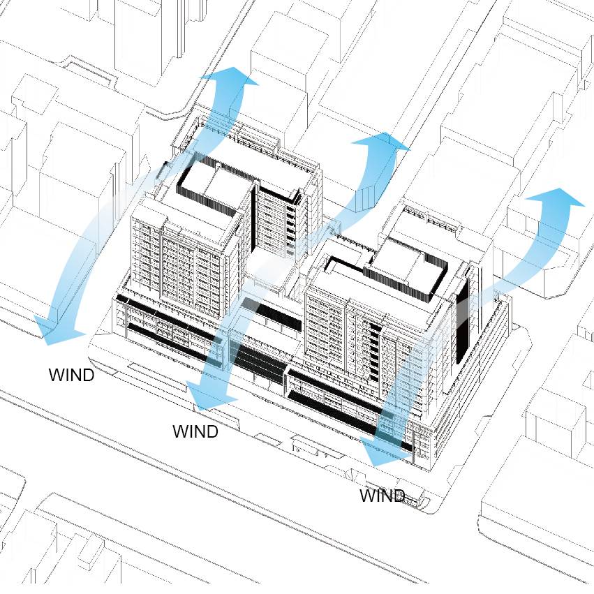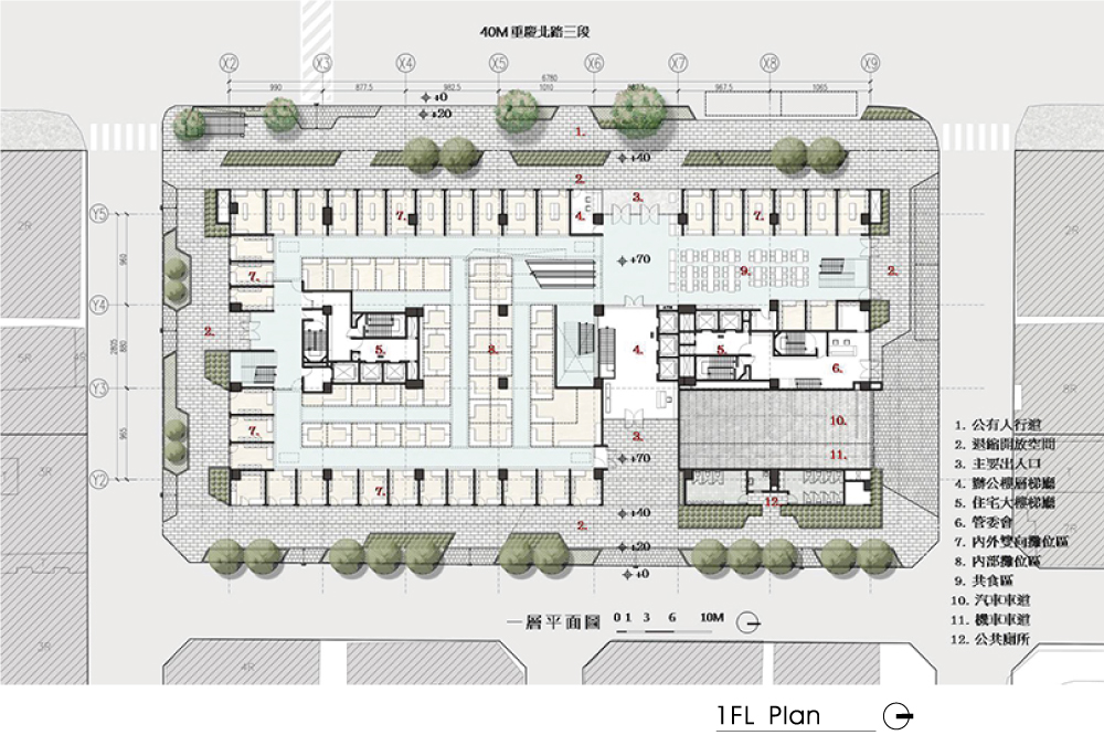 創造沿街開放空間.兼顧市場/綠化/居住品質.分布四向主要入口